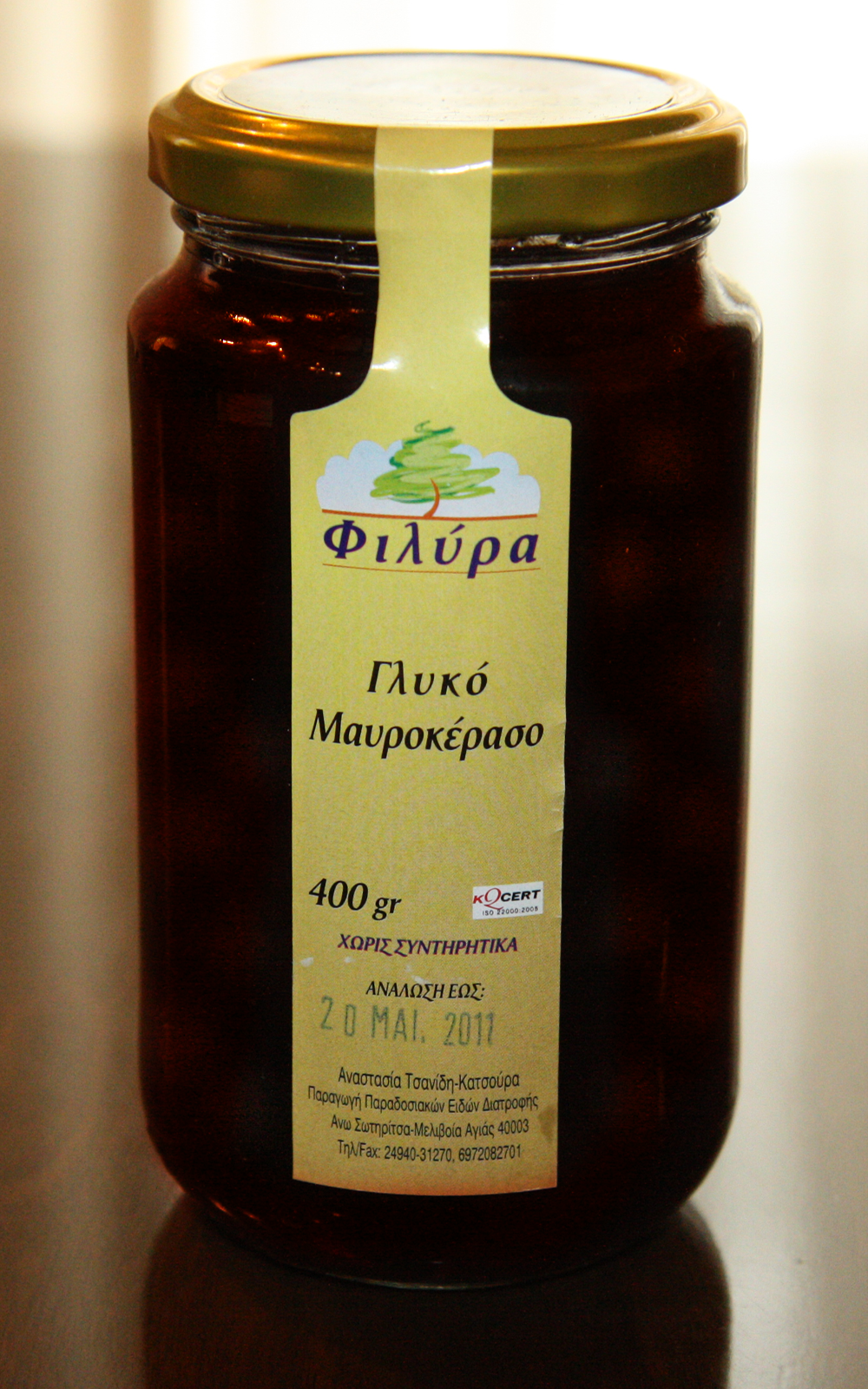 Black cherry spoon sweet. It's one of the most popular Greek spoon sweets. An excellent combination with Greek yogurt, whipped cream or ice cream. Black cherry, sugar, fresh strained lemon juice, flavor.